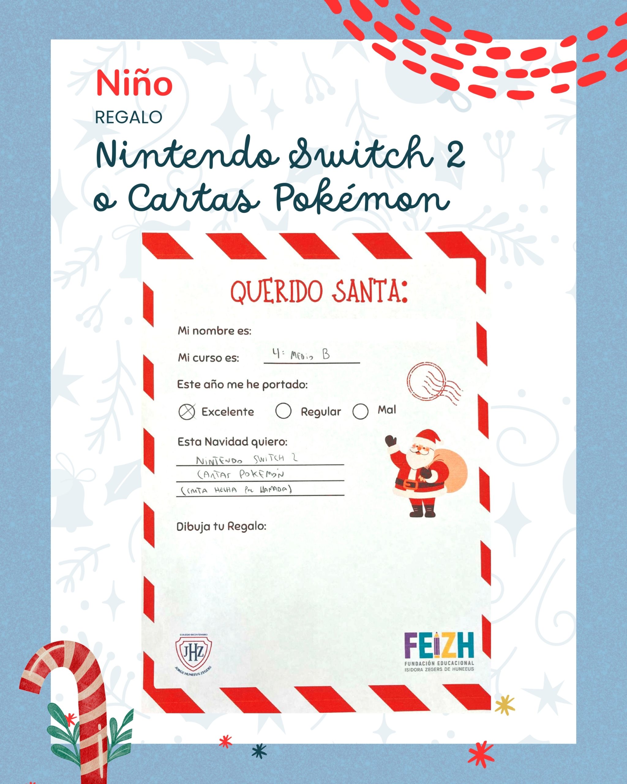 Esta Navidad, queremos llevar alegría a los niños y niñas de 4 a 12 años del Colegio Bicentenario Jorge Huneeus Zegers. Te invitamos a ser parte de esta campaña solidaria y ayudar a que vivan un momento verdaderamente inolvidable.